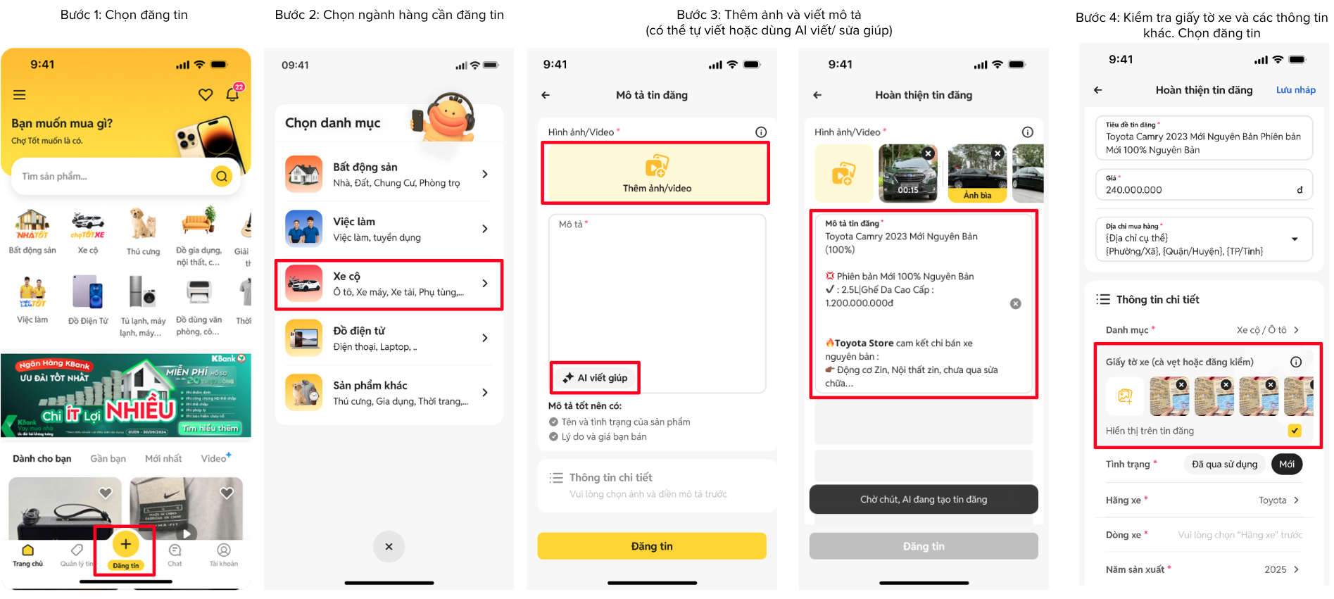 - Với luồng đăng tin mới, người bán Xe máy hoặc Ô tô có thể đăng thêm Giấy tờ xe (như Giấy đăng ký/cà vẹt hoặc Giấy đăng kiểm) để tăng độ tin cậy cho tin đăng: